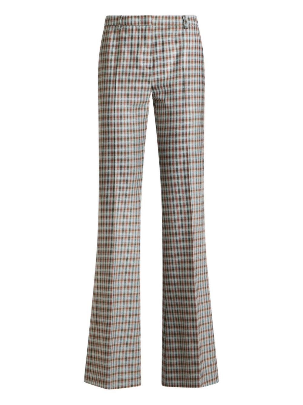 gingham flared trousers Highlights - Prussian blue - Hook and zip fly fastening - Belt loops - Pressed crease Made in Italy Composition Polyester 53%, Wool 43%, Elastane 4% Washing instructions Read Manufacturer Guidelines