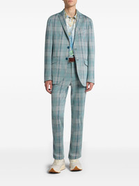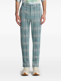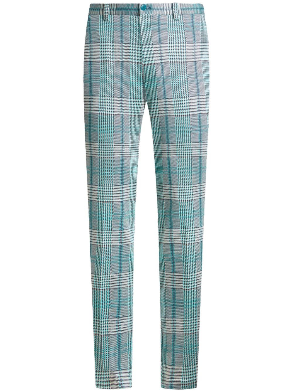Glen trousers Highlights - Aqua blue - Front button fastening - Two side slit pockets - Two rear button-fastening jetted pockets - Check pattern Made in Italy Composition Viscose 54%, Polyamide 43%, Elastane 3%