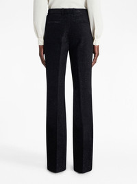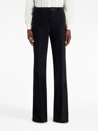 glittered tailored trousers Highlights - Black - Glitter detailing - Pressed crease - Concealed front fastening - Flared - Two side slit pockets - Two rear welt pockets Made in Italy Composition Viscose 72%, Modal 17%, Polyamide 11% Washing instructions Read Manufacturer Guidelines