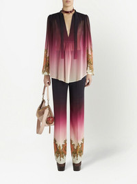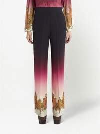gradient-effect silk trousers multicolour silk gradient effect paisley print elasticated waistband pressed crease straight leg Made in Italy Composition Silk 100%