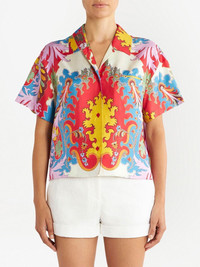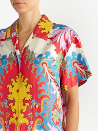 graphic-print short-sleeve T-shirt bright red silk all-over graphic print short sleeves classic collar front button fastening Made in Italy Composition Outer: Silk 100% Washing instructions Read Manufacturer Guidelines