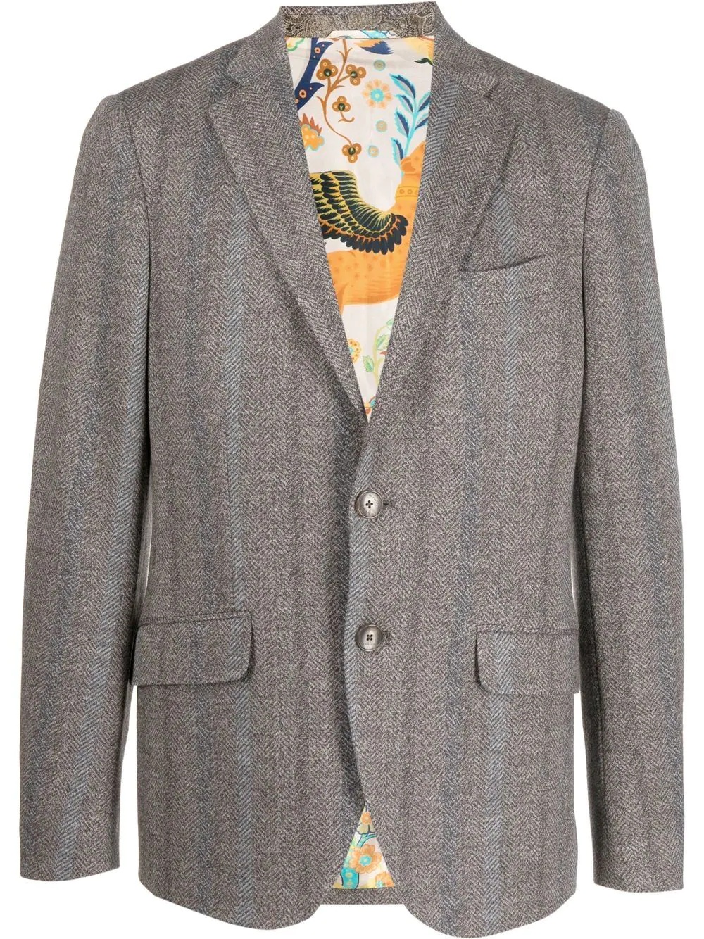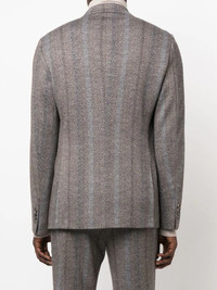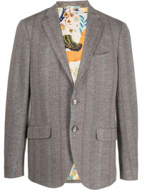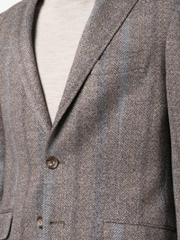 herringbone tonal striped blazer grey/taupe/blue cotton-wool blend herringbone vertical stripe pattern notched lapels chest welt pocket front button fastening two side flap pockets buttoned-cuff sleeves floral-print lining English rear vents Made in Italy Composition Outer: Wool 43%, Cotton 40%, Polyester 17% Lining: Cupro 52%, Viscose 48% SIZE & FIT Model measurements Height 6 ft 0 in(1.84 m) Bust/Chest 35.82 in(91 cm) Hips 37 in(94 cm) Waist 28.34 in(72 cm) FittingInformation Designed for a slim fit, offering a comfortable fit that sits just away from the body The vented hem offers movement at the rear Made from a midweight non-stretch fabric This piece fits true to size – take your usual size Washing instructions Dry Clean Only