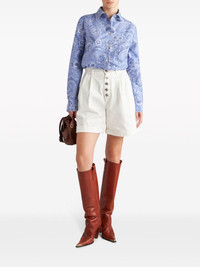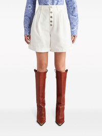 button-up bermuda shorts Highlights - Milk white - Cotton - Embroidered logo to the rear - Signature pegaso motif - Embossed silver-tone buttons - Pintuck detailing - Front button fastening - High-waisted - Belt loops - Two side inset pockets - Two rear button-fastening jetted pockets - Turn-up hem Made in Italy Composition Cotton 100% Washing instructions Read Manufacturer Guidelines