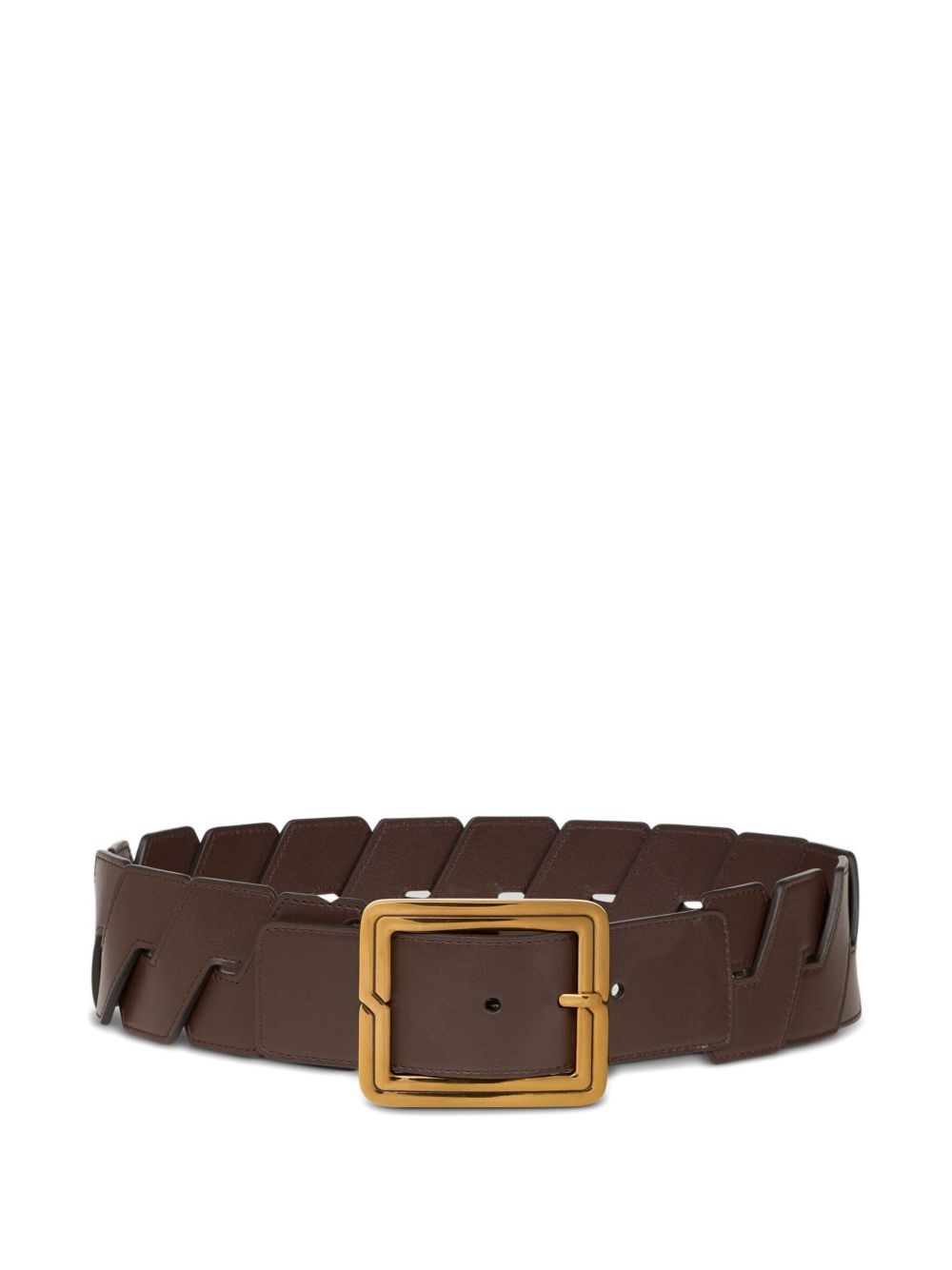 interwoven leather belt Highlights - Coffee brown - Front buckle fastening - Punched holes - Adjustable fit - Engraved detail Made in Italy Composition Leather 100%