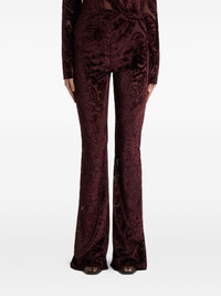 jacquard chenille flared trousers Highlights - Dark red - Chenille texture - Jacquard pattern - Flared leg - High waist - Lace effect Made in Italy Composition Outer: Viscose 86%, Polyamide 14% Lining: Viscose 100% Washing instructions Read Manufacturer Guidelines