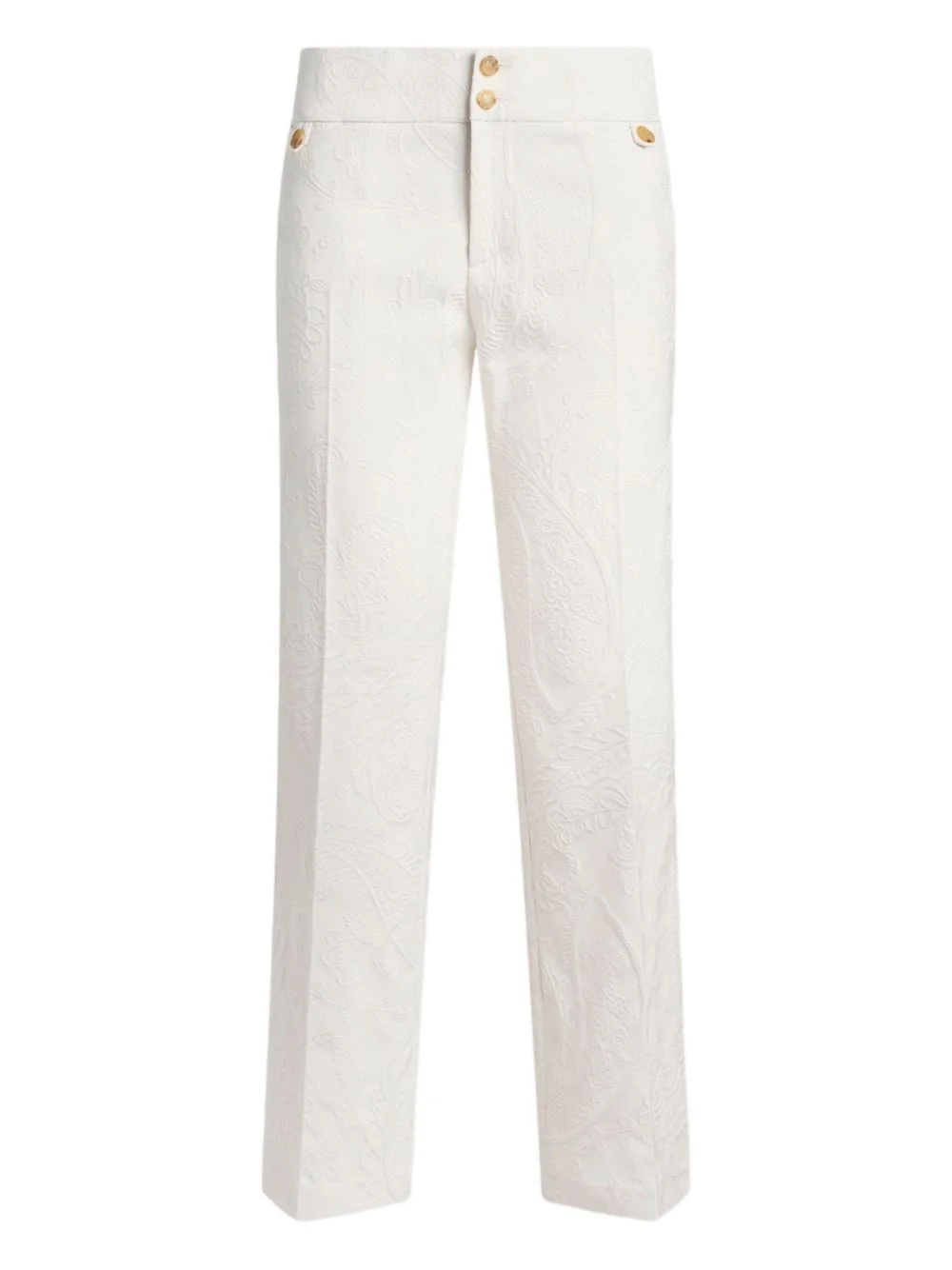 jacquard flared trousers Highlights - White - Jacquard - Paisley foliage motif - Button fastening - Flared leg - High-waisted Made in Italy Composition Cotton 59%, Viscose 40%, Elastane 1% Washing instructions Read Manufacturer Guidelines