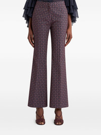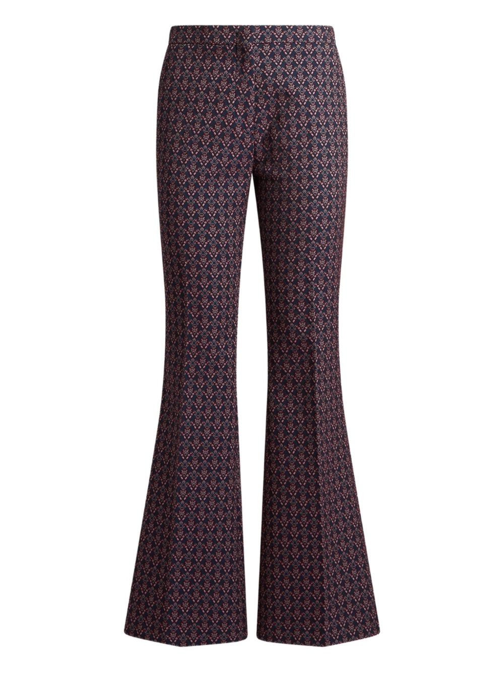 jacquard flared trousers Highlights - Dark-red - Jacquard pattern - Flared leg - High waist - Cotton blend Made in Italy Composition Cotton 59%, Polyester 20%, Nylon 19%, Elastane 2% Washing instructions Read Manufacturer Guidelines