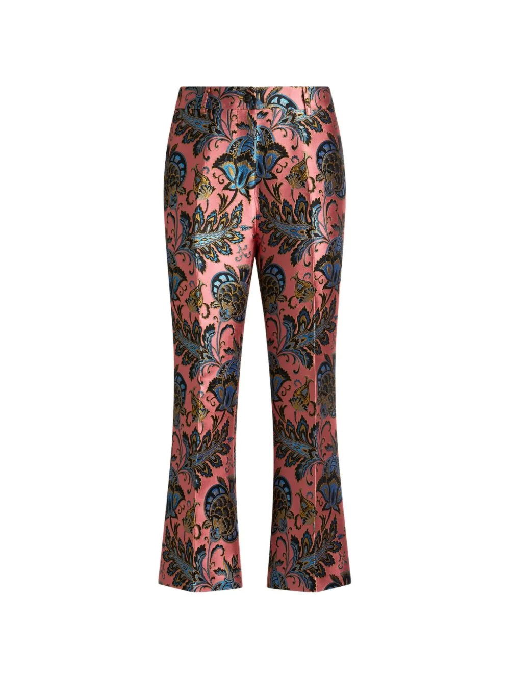 jacquard floral flared trousers Highlights - Pink - Floral print - Jacquard - Belt loops - Flared hem - Side pockets - Button and zip fastening Made in Italy Composition Polyester 49%, Viscose 27%, Cotton 24%