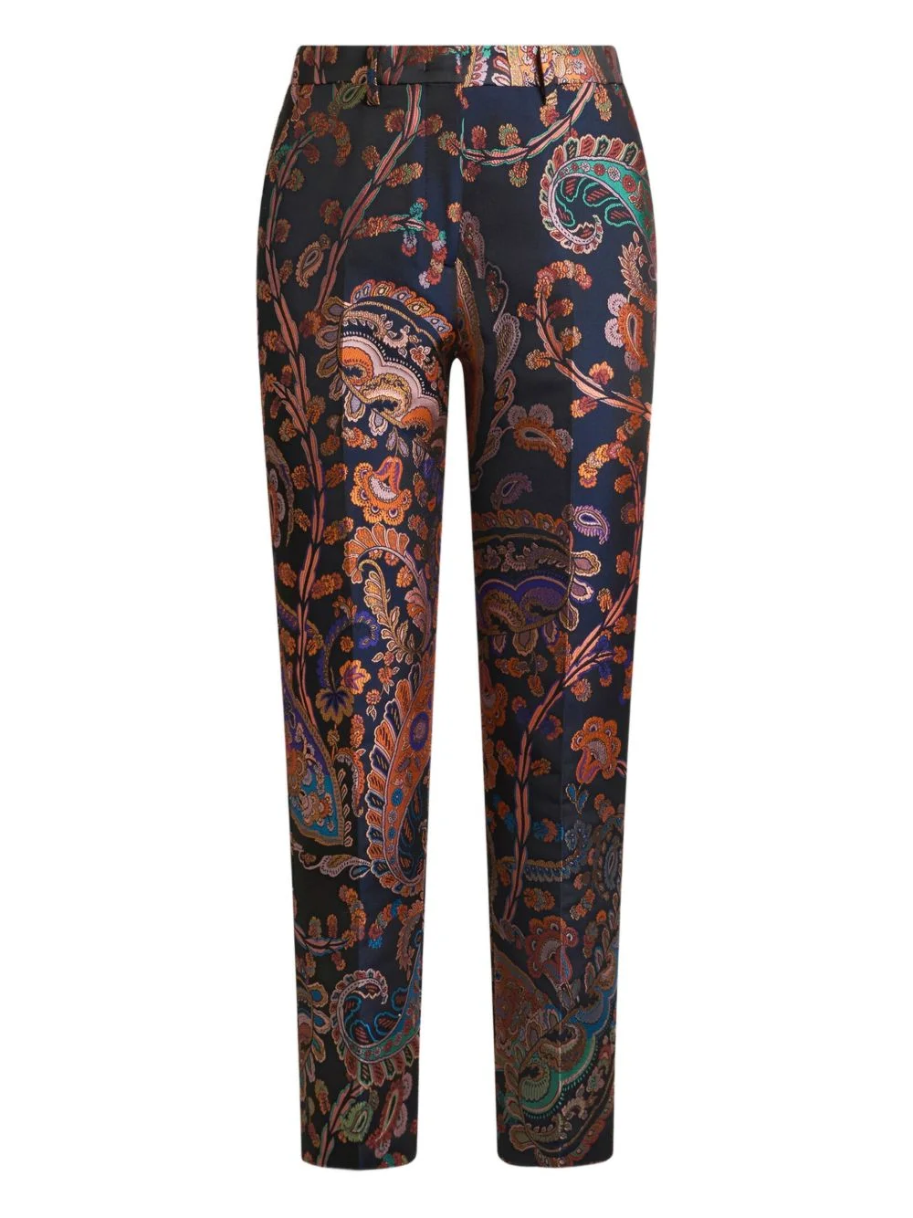 jacquard floral-paisley cigarette trousers Highlights - Dark blue - Floral paisley motif - Jacquard - Side slip pockets - Belt loops Made in Italy Composition Fabric 100% Washing instructions Read Manufacturer Guidelines