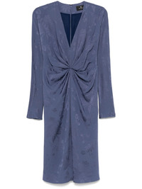 jacquard midi dress Highlights - Cornflower blue - Concealed rear zip fastening - Plunging v-neck - Gathered detailing - Long sleeves Made in Italy Composition Lining: Polyester 100% Outer: Acetate 70%, Viscose 30% SIZE & FIT Model measurements Height 5 ft 9 in(1.75 m) Bust/Chest 34.64 in(88 cm) Hips 36.61 in(93 cm) Waist 26.37 in(67 cm) FittingInformation Designed for a slim fit that sits just away from the body offering a close yet comfortable fit Made from a midweight non-stretch fabric