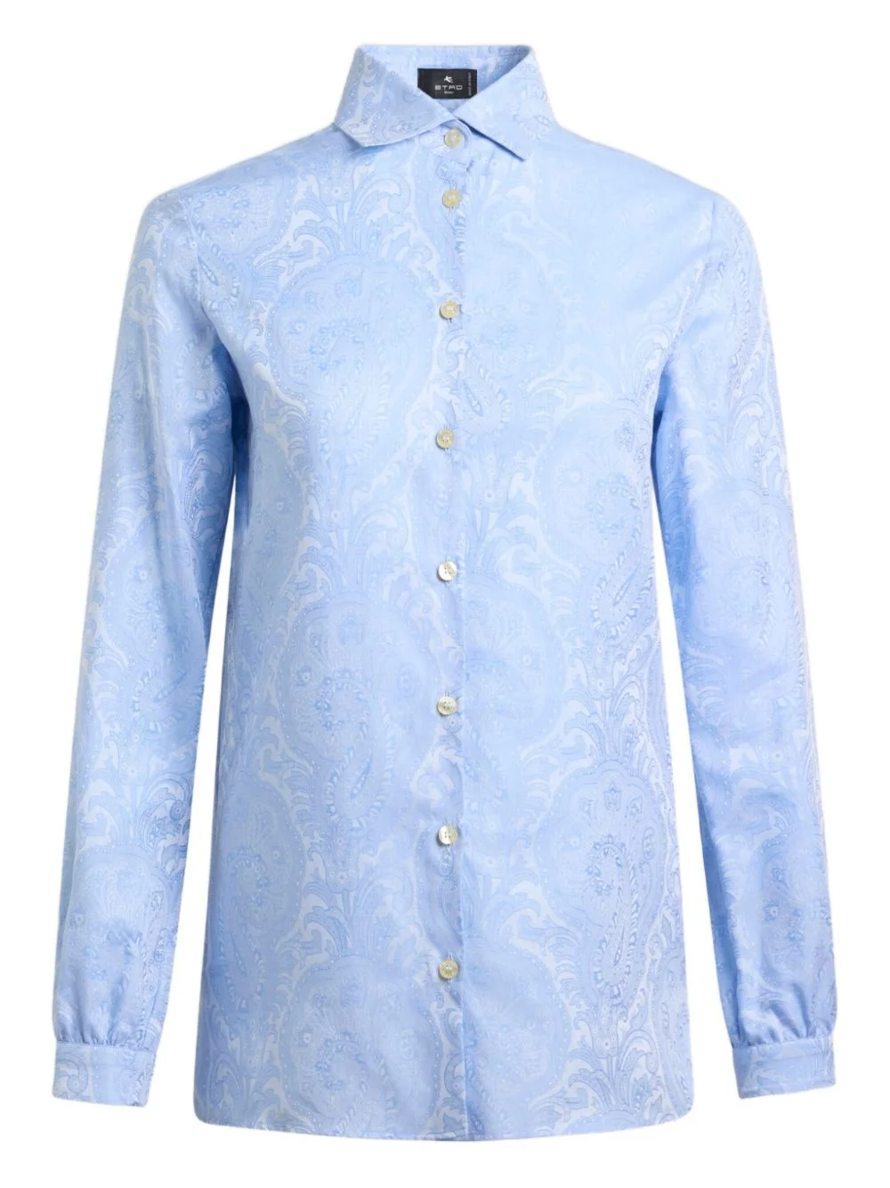 jacquard-motif cotton shirt Highlights - Light blue - Jacquard weave - Button fastening - Long sleeves - Buttoned cuffs - Classic collar Made in Italy Composition Cotton 100% Washing instructions Read Manufacturer Guidelines