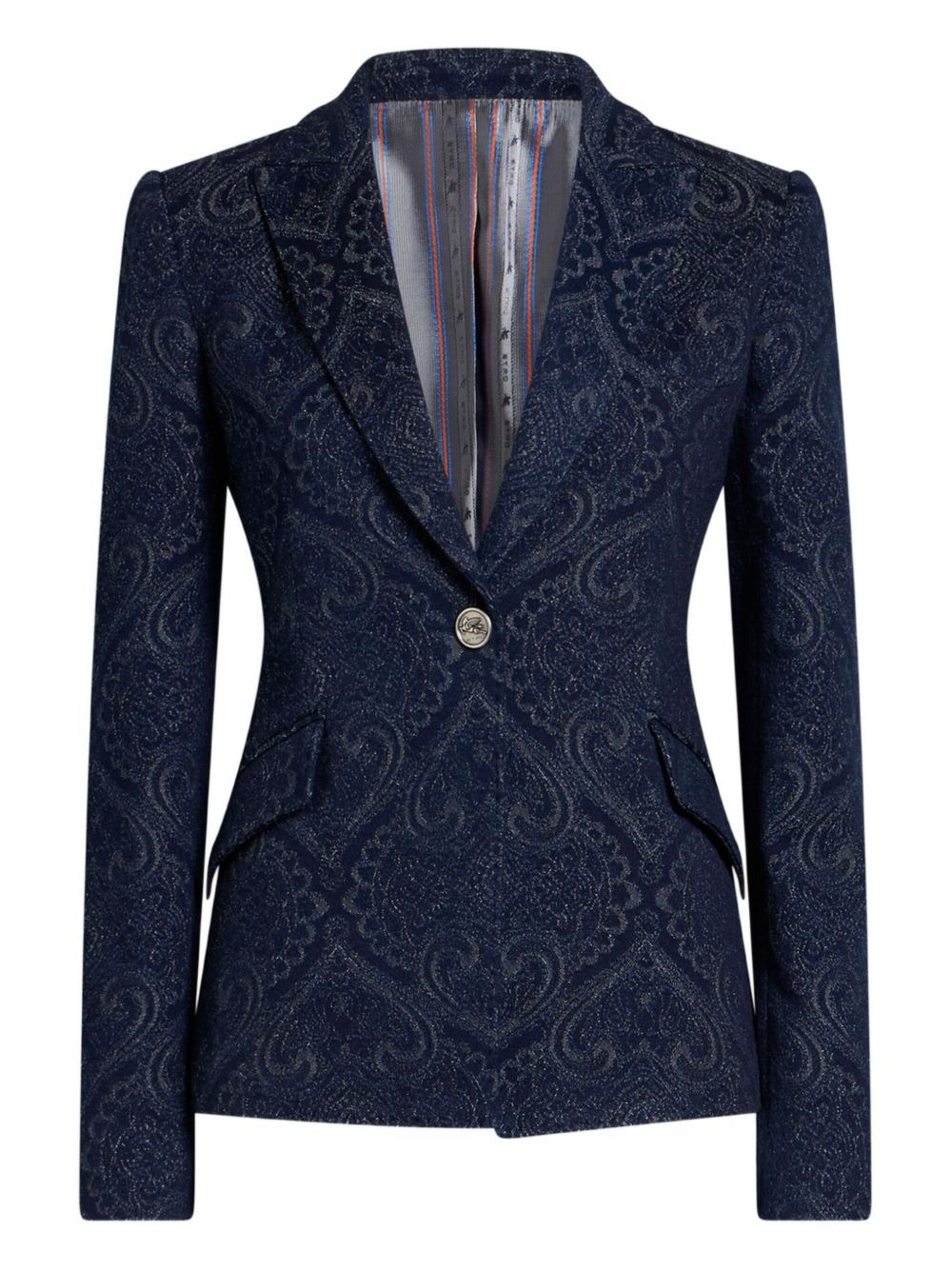 jacquard paisley blazer Highlights - Dark blue - Paisley pattern - Single button fastening - Notched lapel - Long sleeves Made in Italy Composition Outer: Cotton 98%, Elastane 2% Lining: Viscose 52%, Acetate 48% Washing instructions Dry Clean Only