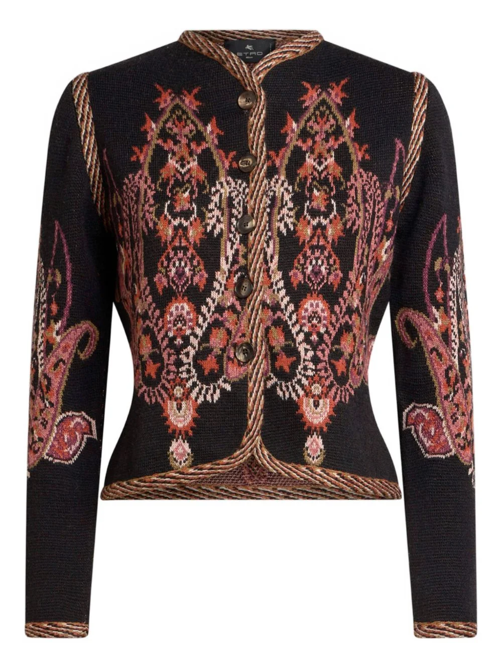 jacquard paisley-motif cardigan Highlights - Black - Jacquard knit - Paisley motif - Button fastening - Crew neck - Long sleeves Made in Italy Composition Wool 50%, Acrylic 50% Washing instructions Read Manufacturer Guidelines