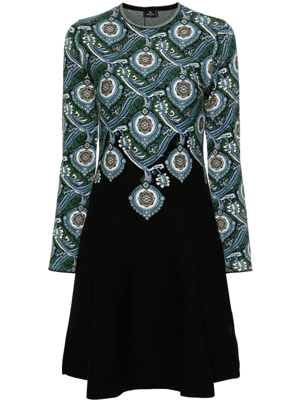 jacquard-pattern knitted dress Highlights - Black/multicolour - Stretch-design - Knitted construction - Patterned jacquard - Round neck - Long sleeves - A-line - Straight hem Made in Italy Composition Viscose 73%, Polyester 27% SIZE & FIT Model measurements Height 5 ft 10 in(1.78 m) Bust/Chest 33.07 in(84 cm) Hips 36.61 in(93 cm) Waist 24.8 in(63 cm) FittingInformation Designed for a close fit at the chest and waist with a loose fit at the hip Made with a midweight knit, this piece offers some stretch This piece fits true to size – take your usual size