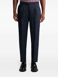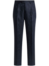 jacquard trousers Highlights - Blue - Linen blend - Patterned jacquard - Pressed crease - Front button and zip fastening - Belt loops - Two rear button-fastening jetted pockets - Straight leg Made in Italy Composition Outer: Linen/Flax 52%, Viscose 48% Lining: Acetate 60%, Viscose 40%
