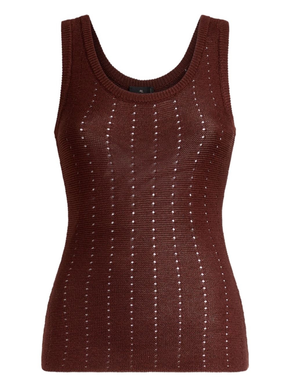 knitted vest Highlights - Brown - Crew neck - Sleeveless - Perforated detailing - Straight hem Made in Italy Composition Fabric 100% SIZE & FIT FittingInformation Designed for a close fit throughout Made with a midweight knit, this piece offers some stretch