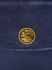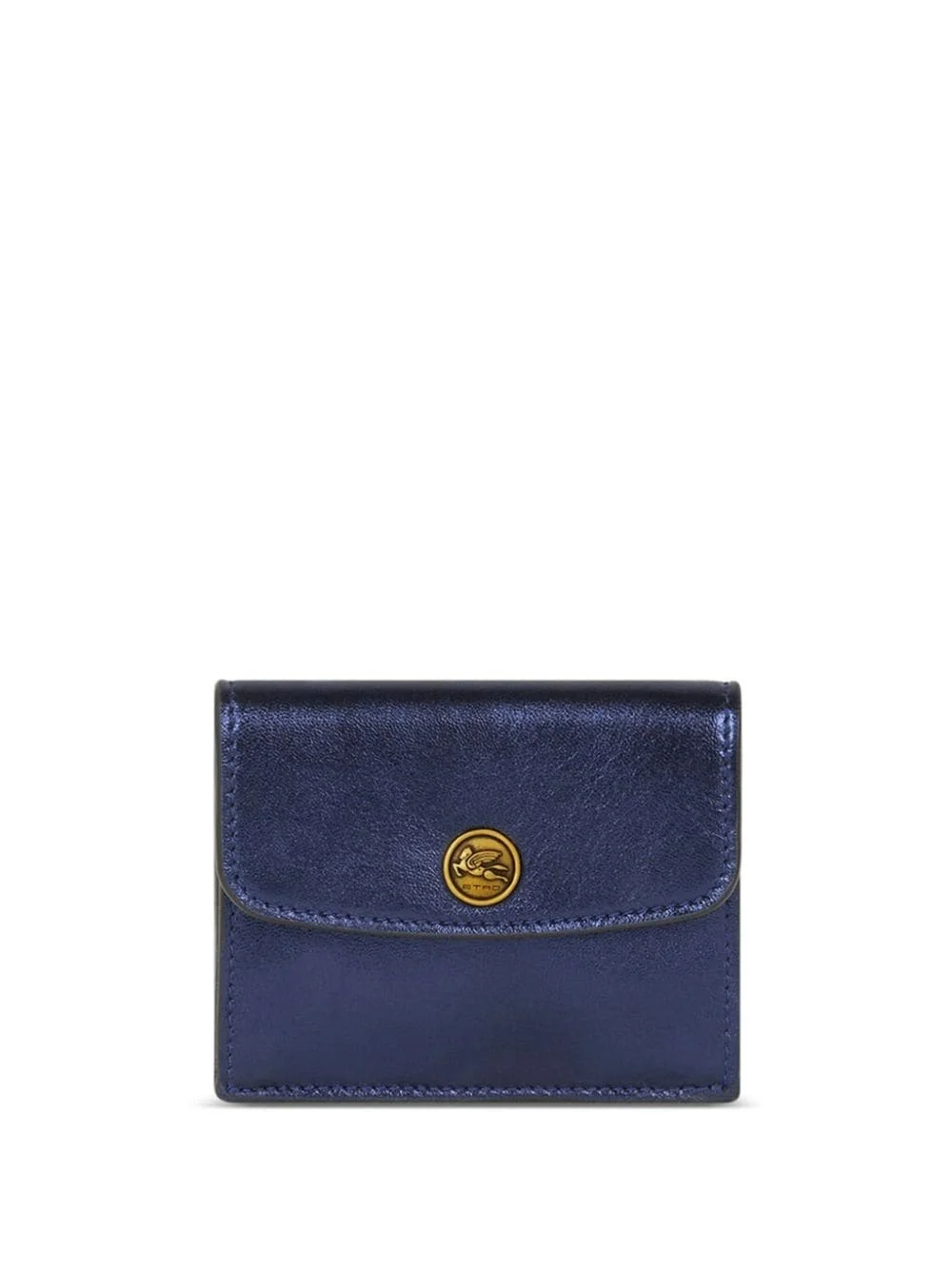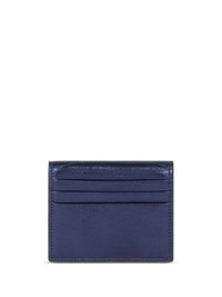 laminated leather cardholder Highlights - Blue - Calf leather - Laminated finish - Signature pegaso motif - Embossed gold-tone buttons - Logo-debossed buttons - Foldover top with magnetic fastening - Main compartment - Rear card slots Made in Italy Composition Lining: Nylon 100% Outer: Lambskin 100% SIZE & FIT Measurement HEIGHT 3.34 in(8.5 cm) WIDTH 4.13 in(10.5 cm)