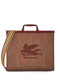 large Love Trotter tote bag Highlights - Brown/multicolour - Cotton/calf leather - Patterned jacquard - Paisley print - Signature pegaso motif - Open top - Gold-tone hardware - Detachable shoulder strap - Two top handles - Main compartment - Internal zip-fastening pocket - Striped lining Made in Italy Composition Outer: Cotton 100% Lining: Polyester 100% Trims: CALFSKIN 100% SIZE & FIT Measurement DEPTH 6.69 in(17 cm) HEIGHT 13.77 in(35 cm) STRAP 33.46 in(85 cm) WIDTH 16.73 in(42.5 cm)