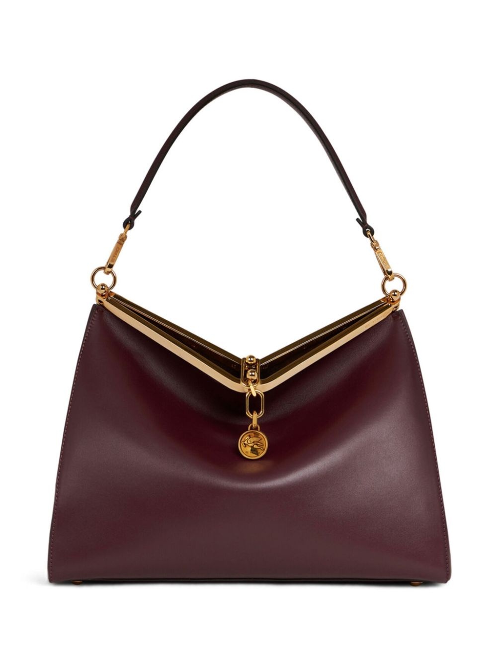 large Vela leather shoulder bag Highlights - Burgundy - Leather - Single detachable top handle - Main compartment - Gold-tone hardware Made in Italy Composition Lining: CALFSKIN 100% Outer: CALFSKIN 100% SIZE & FIT Measurement DEPTH 5.11 in(13 cm) HANDLE 10.62 in(27 cm) HEIGHT 9.84 in(25 cm) STRAP 19.68 in(50 cm) WIDTH 12.99 in(33 cm)