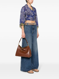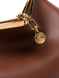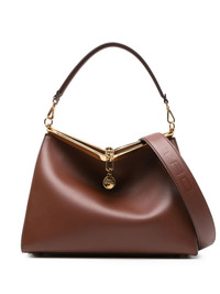 large Vela leather shoulder bag Designed by Marco De Vincenzo, the Vela Bag is an iconic design that evokes a sail aesthetic. Crafted in brown leather, this large iteration features the signature V-shaped clasp fastening and double-sided medallion. A detachable pouch comes with the accessory. Highlights - Chocolate brown - Calf leather - Signature pegaso medallion charm - Open top - Chain-link fastening - Single detachable top handle - Detachable shoulder strap - Metal feet - Suede lining - Main compartment - Removable suede pouch - Gold-tone hardware - This piece comes complete with a protective dust bag. Made in Italy Composition Outer: Calf Leather 100% Lining: Calf Leather 100% SIZE & FIT Model measurements Height 5 ft 11 in(1.8 m) Bust/Chest 33.07 in(84 cm) Hips 37 in(94 cm) Waist 25.59 in(65 cm) Measurement DEPTH 5.11 in(13 cm) HANDLE 6.69 in(17 cm) HEIGHT 9.84 in(25 cm) STRAP 17.71 in(45 cm) WIDTH 12.99 in(33 cm)