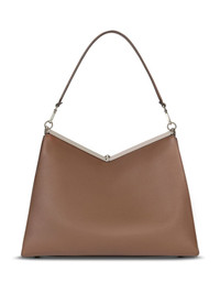 large Vela shoulder bag Highlights - Taupe brown - Calf leather - Grained texture - Clasp fastening - Detachable top handles - Silver-tone hardware - Logo charm - Metal feet - Main compartment Made in Italy Composition Outer: Calf Leather 100%, Polyester 95%, Polyamide 5% Lining: Calf Leather 100% SIZE & FIT Measurement DEPTH 7.48 in(19 cm) HANDLE 10.62 in(27 cm) HEIGHT 10.23 in(26 cm) STRAP 17.32 in(44 cm) WIDTH 16.53 in(42 cm)