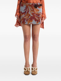 leaf-print belted mini skirt