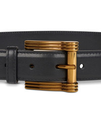 leather belt Highlights - Black - Gold-tone buckle fastening - Punched holes - Pointed tip Made in Italy Composition CALFSKIN 100% SIZE & FIT Measurement WIDTH 1.18 in(3 cm)