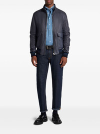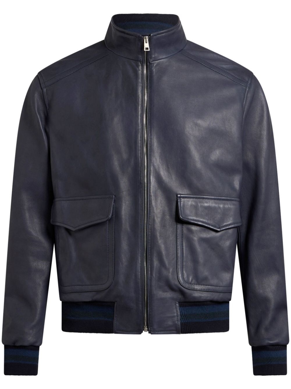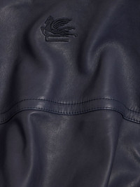 leather bomber jacket Highlights - Midnight blue - Front zip fastening - Ribbed cuffs and hem - Two front flap pockets - Signature pegaso motif Made in Italy Composition Leather 100% SIZE & FIT Measurement CHEST 44.09 in(112 cm) SLEEVE LENGTH 35.43 in(90 cm) LENGTH 27.95 in(71 cm) WAIST 39.37 in(100 cm) Shoulder Width 19.48 in(49.5 cm)