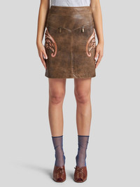leather skirt Highlights - Light brown - Rear zip fastening - Two side zip-fastening pockets - Floral applique Made in Italy Composition Calf Leather 100%