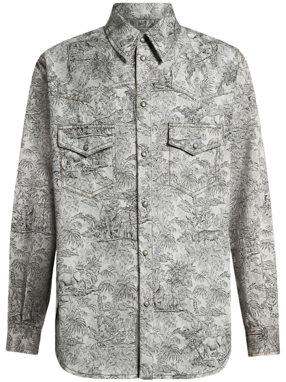 linen denim shirt jacket Highlights - Light grey - Front button fastening - Two chest flap pockets - Straight-point collar - Long sleeves Made in Italy Composition Linen/Flax 100%