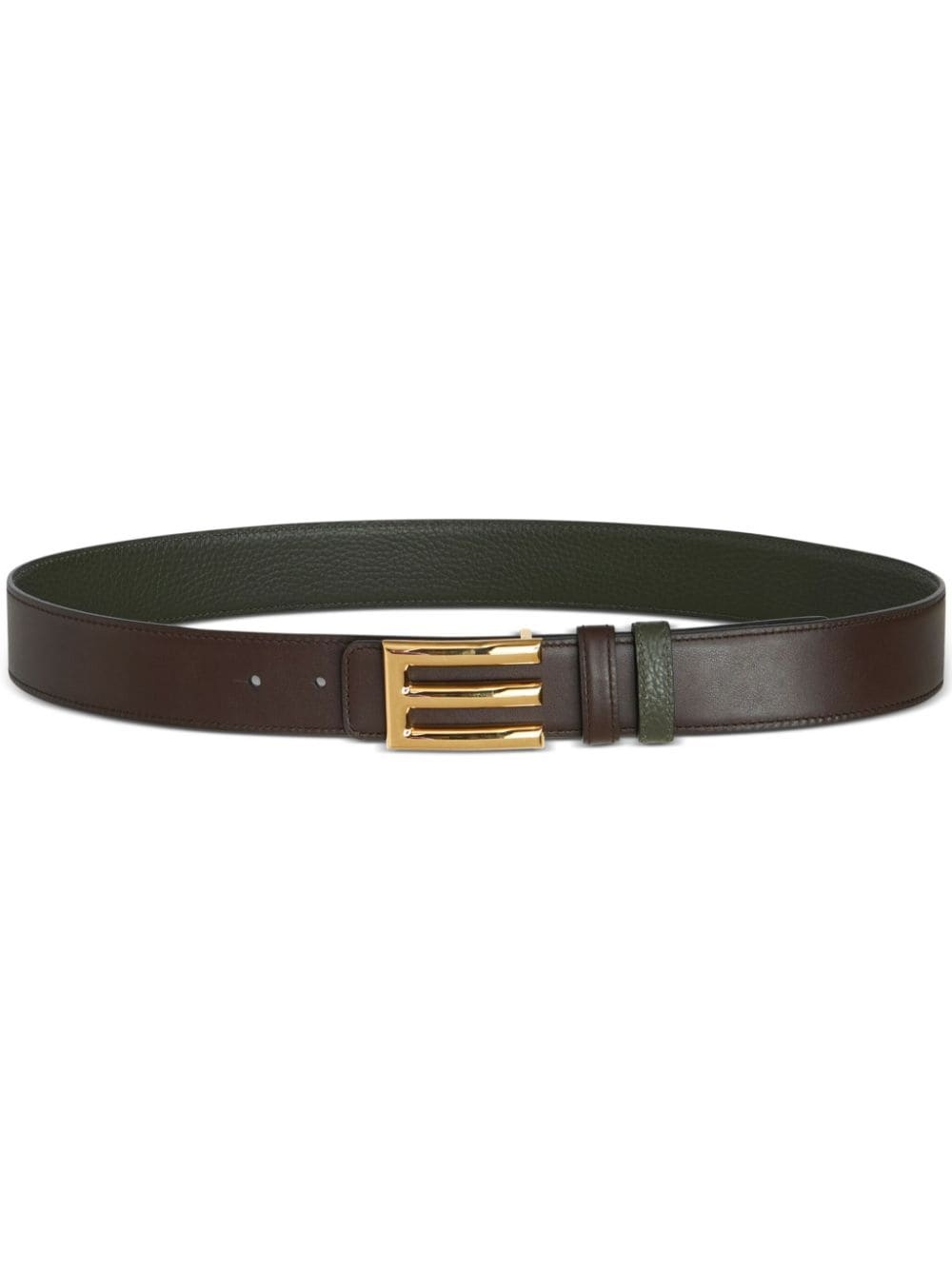 logo-buckle leather belt Highlights - Brown - Calf leather - Logo-buckle fastening - Gold-tone hardware - Punched holes - Adjustable fit Made in Italy Composition Calf Leather 100%