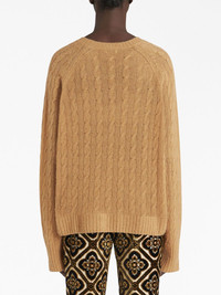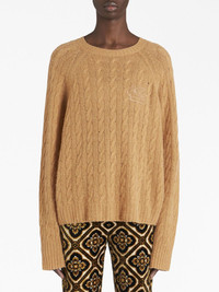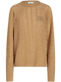 logo-embroidered cable-knit jumper Renowned for its luxurious fabrics, ETRO introduces this cashmere jumper. Crafted with a classic cable knit, its soft silhouette is is rendered in a camel brown hue and decorated with tonal logo embroidery at the chest. Highlights - Camel brown - Cashmere - Cable knit - Embroidered logo at the chest - Crew neck - Long sleeves - Ribbed cuffs Made in Italy Composition Cashmere 100%