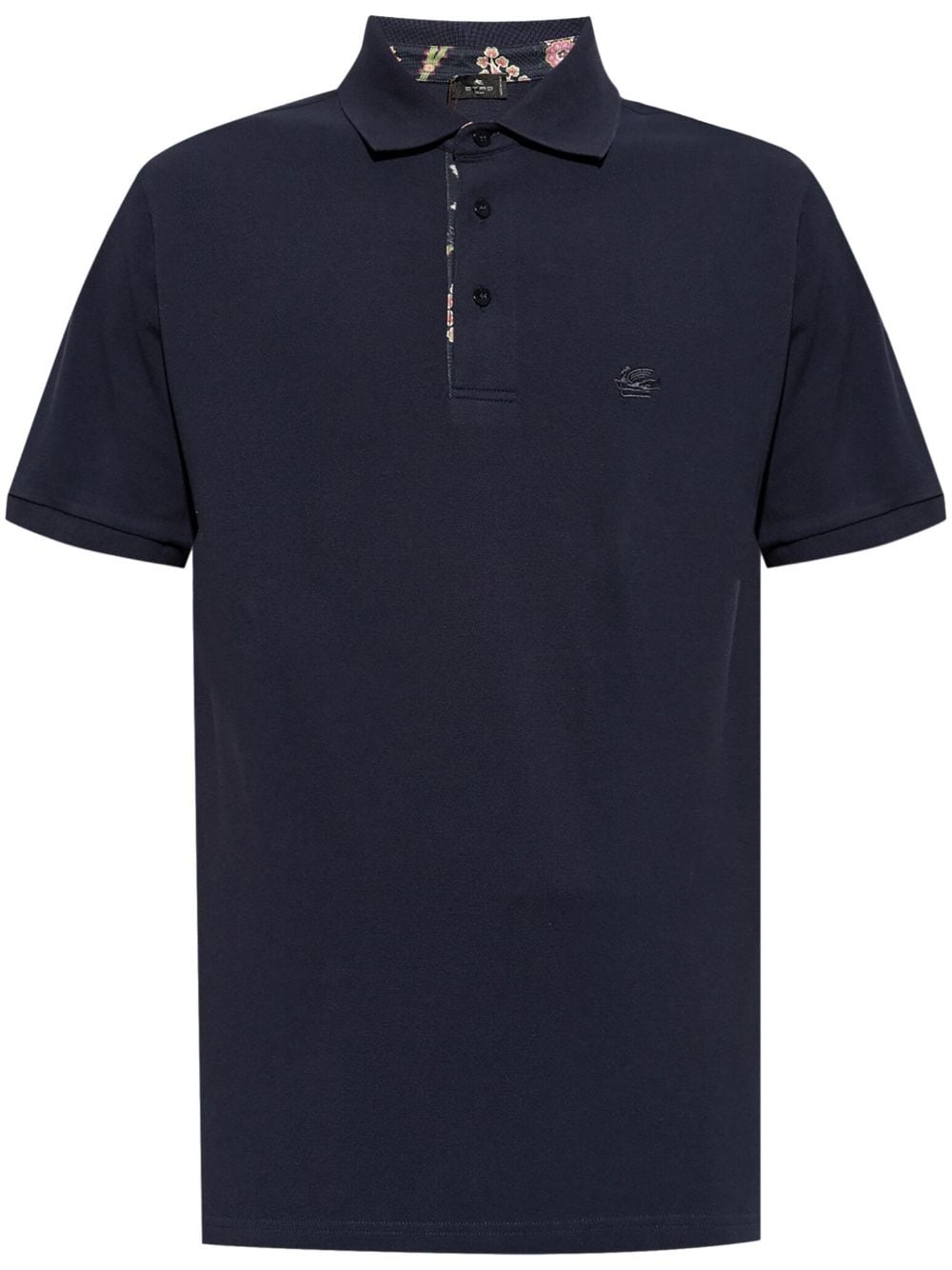 logo-embroidered cotton polo shirt Highlights - Navy blue - Cotton - Pique weave - Embroidered logo at the chest - Spread collar - Short front button fastening - Short sleeves - Straight hem Made in Italy Composition Cotton 100% SIZE & FIT FittingInformation Designed for a regular fit, this polo shirt offers a comfortable loose fit throughout the body Made from a midweight non-stretch fabric, this piece offers minimal elasticity when worn This piece fits true to size – take your usual size Measurement CHEST 38.58 in(98 cm) SLEEVE LENGTH 16.53 in(42 cm)