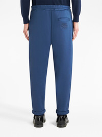logo-embroidered jersey trousers Highlights - Cobalt blue - Embroidered logo to the rear - Elasticated waistband - Drawstring fastening - Rear jetted pocket - Tapered leg Made in Italy Composition Polyester 58%, Cotton 42% Washing instructions Read Manufacturer Guidelines
