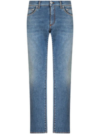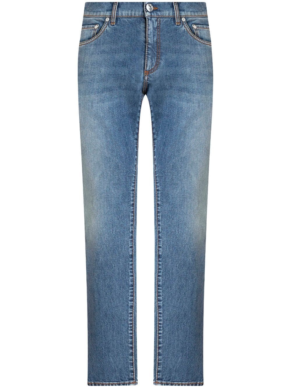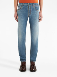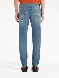 logo-embroidered straight-leg jeans Highlights - Light blue - Stretch-cotton - Denim - Embroidered logo to the rear - Silver-tone hardware - Straight leg - Belt loops - Front button and zip fastening - Classic five pockets Made in Italy Composition Cotton 98%, Spandex/Elastane 2%