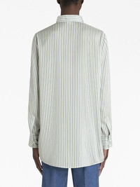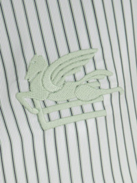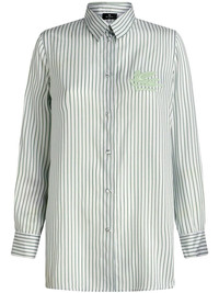 logo-embroidered striped shirt Highlights - Green - Silk - Vertical stripe print - Embroidered logo at the chest - Classic collar - Front button fastening - Fabric-covered buttons - Long sleeves - Buttoned cuffs - Straight hem Made in Italy Composition Silk 100% SIZE & FIT FittingInformation Designed for a relaxed fit, this piece allows for comfort and movement when worn Made from a midweight non-stretch fabric