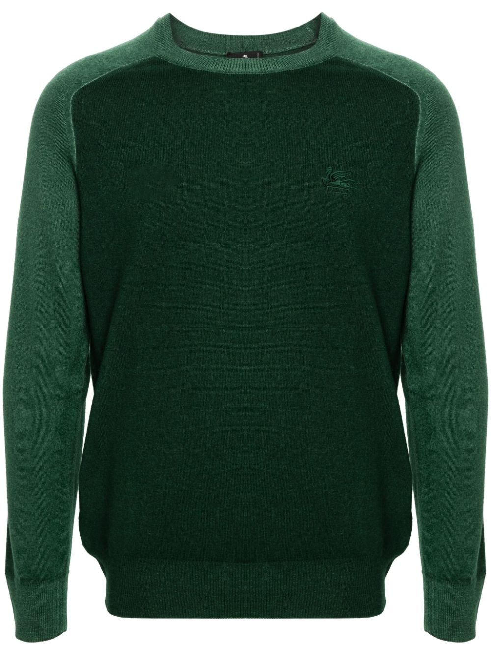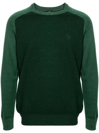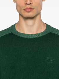 logo-embroidered sweater Highlights - Moss green - Wool - Knitted construction - Crew neck - Long raglan sleeves - Ribbed trim - Signature pegaso motif - Straight hem Made in Italy Composition Wool 100% SIZE & FIT Model measurements Height 6 ft 1 in(1.86 m) Bust/Chest 37.4 in(95 cm) Hips 36.22 in(92 cm) Waist 29.52 in(75 cm) Measurement CHEST 40.15 in(102 cm) SLEEVE LENGTH 32.28 in(82 cm) FittingInformation Designed for a regular fit, offering a comfortable loose fit throughout the body The ribbed hem offers a close, comfortable fit Made with a midweight knit, this piece offers some stretch This piece fits true to size – take your usual size