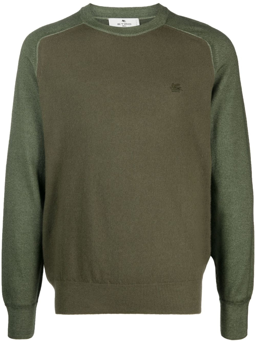 logo-embroidered virgin wool sweater Highlights - Khaki/olive green - Virgin wool - Knitted construction - Two-tone design - Embroidered logo at the chest - Ribbed band collar - Long sleeves - Ribbed cuffs and hem Made in Italy Composition Virgin Wool 100% SIZE & FIT Model measurements Height 6 ft 2 in(1.88 m) Bust/Chest 36.61 in(93 cm) Hips 37.79 in(96 cm) Waist 28.74 in(73 cm) FittingInformation Designed for a slim fit, offering a comfortable fit that sits just away from the body Made with a midweight knit, this piece offers some stretch This piece fits true to size – take your usual size