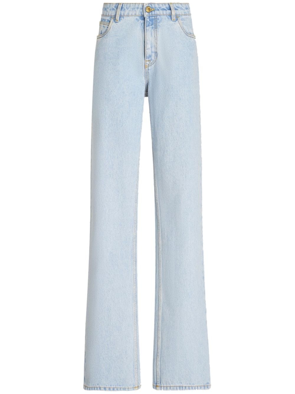 logo-embroidery straight-leg jeans Highlights - Light blue - Cotton - Mid-rise - Belt loops - Concealed fly and button fastening - Classic five pockets - Embroidered logo - Straight leg Made in Italy Composition Cotton 100% SIZE & FIT Measurement FRONT RISE 12.2 in(31 cm) INSIDE LEG 34.25 in(87 cm) HIPS 44.88 in(114 cm) WAIST 29.13 in(74 cm) Washing instructions Read Manufacturer Guidelines