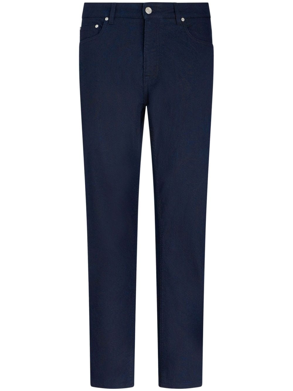 logo-patch straight-leg jeans Highlights - Midnight blue - Cotton blend - Denim - Logo patch to the rear - Belt loops - Straight leg - Front button and zip fastening - Classic five pockets Made in Italy Composition Cotton 56%, Polyester 41%, Elastane 3%