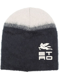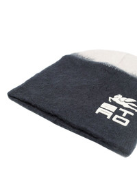 logo-print virgin-wool hat navy blue virgin wool blend two-tone design logo print to the front knitted construction Made in Italy Composition Polyester 100%, Acrylic 42%, Polyamide 20%, Virgin Wool 19%, Mohair 19%