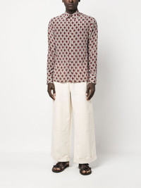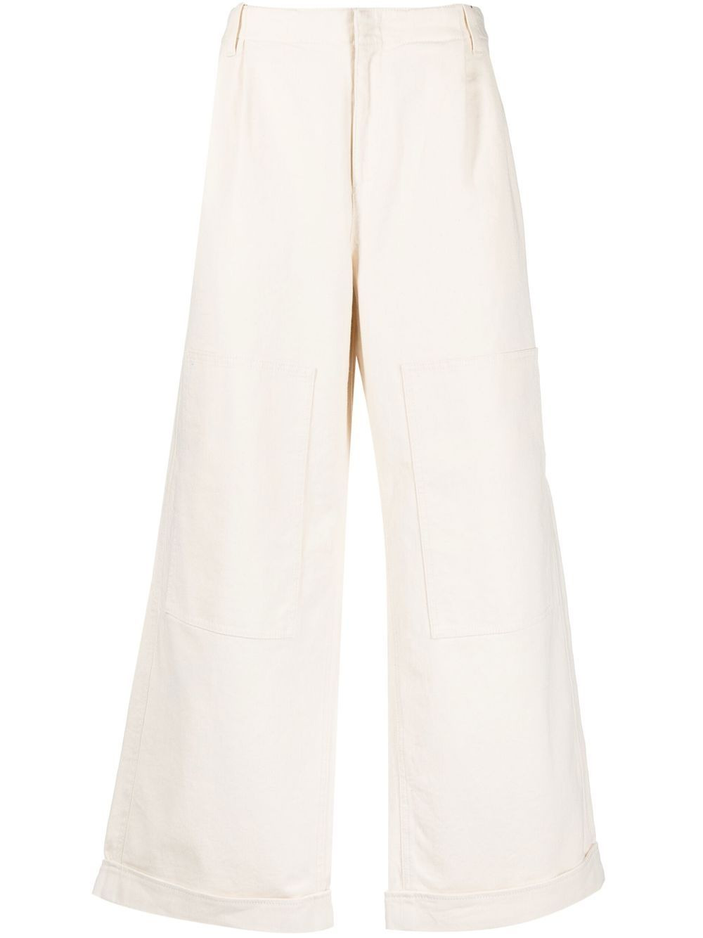 low-rise wide-leg trousers white stretch-cotton pleat detailing wide leg low-rise concealed front fastening belt loops multiple patch pockets slip pocket to the rear turn-up hem Made in Italy Composition Cotton 98%, Elastane 2% SIZE & FIT Model measurements Height 6 ft 2 in(1.87 m) Bust/Chest 36.41 in(92.5 cm) Hips 37 in(94 cm) Waist 29.52 in(75 cm) Measurement FRONT RISE 11.81 in(30 cm) INSIDE LEG 29.13 in(74 cm) WAIST 36.22 in(92 cm) FittingInformation This piece fits true to size. We recommend you get your regular size Designed for a slim fit at the waist and loose over the leg Made with a mid-weight stretch fabric Washing instructions Machine Wash