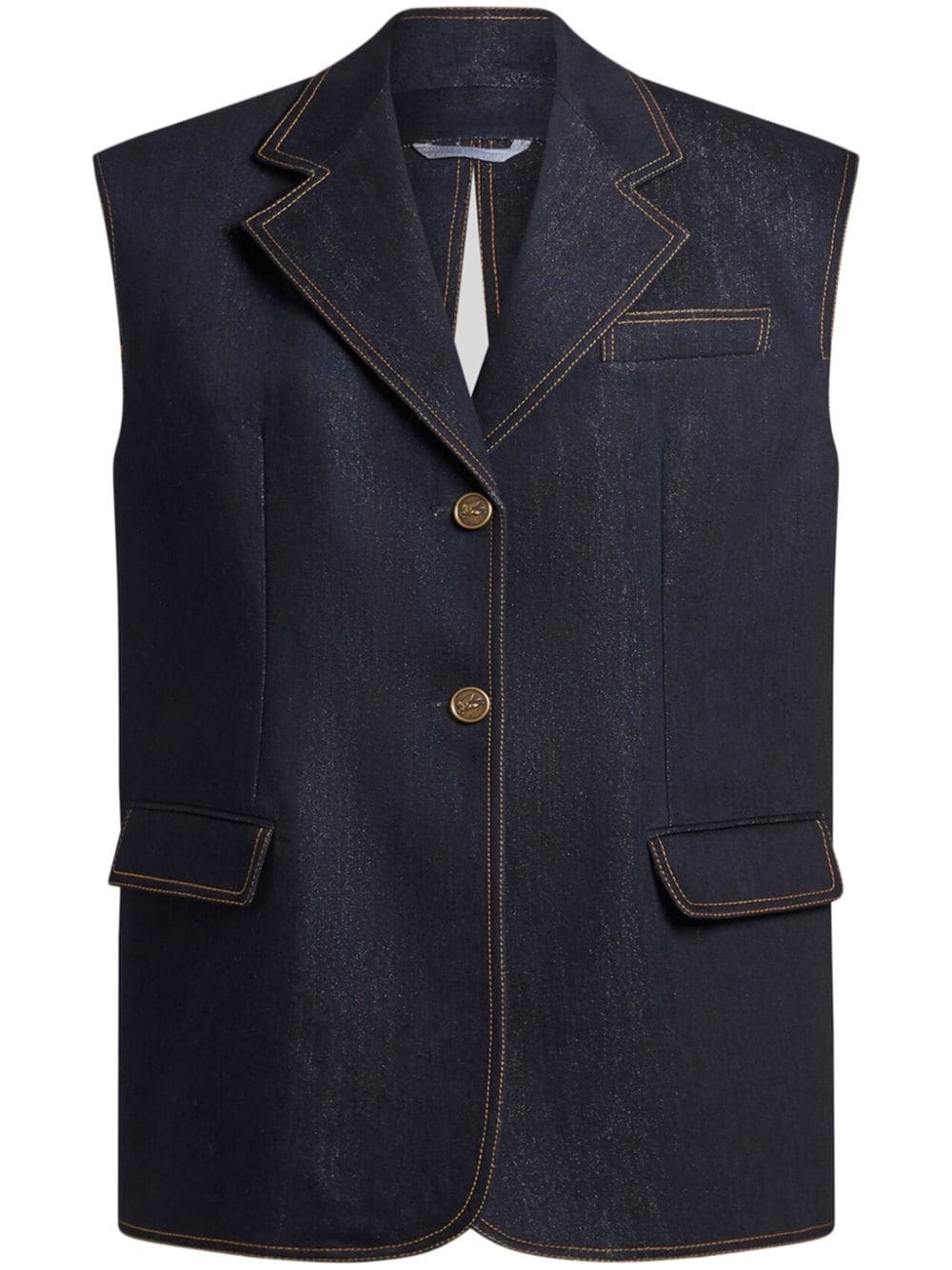 lurex denim vest Highlights - Navy blue - Cotton - Denim - Lurex detailing - Front button fastening - Notched collar - Sleeveless - Chest welt pocket - Two front flap pockets - Straight hem - Open back Made in Italy Composition Cotton 100%