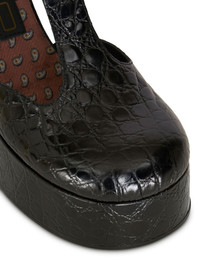 Mary Jane 110mm round-toe pumps An ode to the classic Mary Jane, these ETRO leather pumps feature an embossed crocodile effect in sophisticated black. A dainty gold-tone buckle contrasts with its towering block heel. Highlights - Black - Calfskin - Embossed crocodile effect - Gold-tone hardware - Round toe - Buckle-fastening ankle strap - Branded leather insole - 110mm block heel - Platform sole Made in Italy Composition Sole: Calf Leather 100% Outer: Leather 100% Lining: Polyester 100% SIZE & FIT Measurement HEEL 4.33 in(11 cm) PLATFORM 1.57 in(4 cm)
