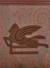 medium Pegaso-embroidered leather bag Highlights - Terracotta brown - Calf leather - Paisley print - Embroidered logo to the front - Signature pegaso motif - Tonal stitching - Silver-tone hardware - Top zip fastening - Detachable adjustable logo-jacquard shoulder strap - Partitioned compartment - Full lining Made in Italy Composition Outer: Calf Leather 100%, Cotton 76%, Polyester 24% Lining: Polyester 100% SIZE & FIT Measurement DEPTH 3.74 in(9.5 cm) HEIGHT 7.08 in(18 cm) WIDTH 9.25 in(23.5 cm)