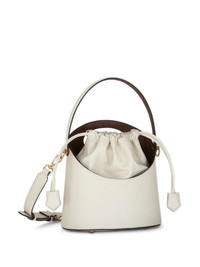medium Saturno bucket bag Highlights - Cream white - Leather - Gold-tone hardware - 'remove before flight' slogan tag - Debossed logo to the front - Paisley print - Bucket body - Top drawstring fastening - Adjustable shoulder strap - Single top handle - Cut-out top handle - Main compartment - Internal logo applique - Internal patch pocket - Metal feet Made in Italy Composition Outer: Calf Leather 100%, Cotton 76%, Polyester 24% Lining: Polyester 100% SIZE & FIT Measurement DEPTH 8.58 in(21.8 cm) HEIGHT 9.05 in(23 cm) WIDTH 6.1 in(15.5 cm)