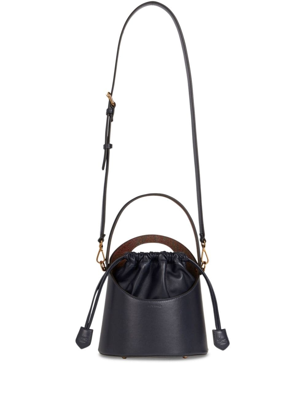 medium Saturno bucket bag Highlights - Midnight blue - Leather - Smooth grain - Gold-tone hardware - Tonal stitching - Embossed logo to the front - Embossed logo to the side - Top drawstring fastening - Single flat top handle - Adjustable detachable shoulder strap - Main compartment - Full lining - This piece comes complete with a protective dust bag. Made in Italy Composition Lining: Polyester 100% Outer: Leather 100%, PVC 100% SIZE & FIT Measurement DEPTH 6.1 in(15.5 cm) HEIGHT 8.58 in(21.8 cm) WIDTH 9.05 in(23 cm)