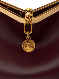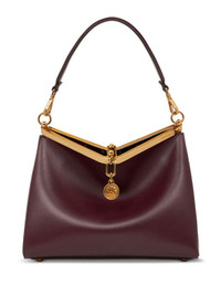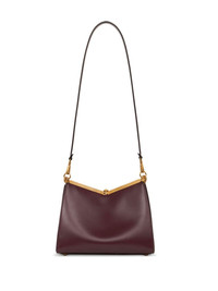 medium Vela leather shoulder bag Highlights - Bordeaux red - Calf leather - Smooth grain - Single detachable top handle - Adjustable detachable shoulder strap - Engraved logo - Logo charm - Main compartment - Removable pouch - Metal feet - Gold-tone hardware - Clasp fastening - This piece comes complete with a protective dust bag. Made in Italy Composition Outer: Calf Leather 100% SIZE & FIT Measurement DEPTH 4.33 in(11 cm) HEIGHT 8.28 in(21 cm) WIDTH 11.02 in(28 cm)