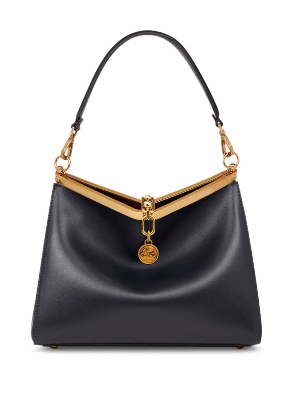medium Vela leather shoulder bag Highlights - Navy blue - Leather - Clasp fastening - Main compartment - Detachable shoulder strap - Gold-tone hardware Made in Italy Composition Outer: CALFSKIN 100%