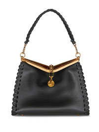 medium Vela leather shoulder bag Highlights - Black - Calf leather - Decorative stitching - Signature pegaso motif - Chain-link detailing - Gold-tone hardware - Clasp fastening - Detachable shoulder strap - Single detachable top handle - Main compartment - Removable pouch - Metal feet Made in Italy Composition Outer: Calf Leather 100%